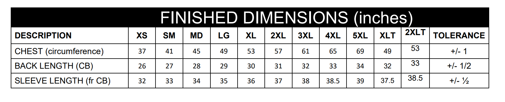 XS-5XL | TALL: LT, XLT & 2XLT in all colors (upcharges apply for 2XL-5XL)